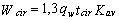 где qw - расход сточных вод, м /ч; tz - длительность залпового сброса, ч; Kav - требуемый коэффициент усреднения, равный: здесь Сmax - концентрация загрязнений в залповом сбросе; Сmid - средняя концентрация загрязнений в сточных водах; Сadm - концентрация, допустимая по условиям работы последующих сооружений. 6.42. Объем усреднителя Wcir, м3, при циклических колебаниях надлежит рассчитывать по формулам: