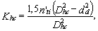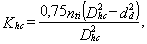 где u0 - гидравлическая крупность частиц, которые необходимо выделить для обеспечения требуемого эффекта, мм/с; Khc - коэффициент пропорциональности, зависящий от типа гидроциклона и равный для гидроциклонов: без внутренних устройств - 0,61; с конической диафрагмой и внутренним цилиндром - 1,98; многоярусного с центральными выпусками