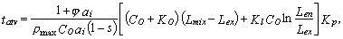 где Kp - коэффициент, учитывающий влияние продольного перемешивания: Kp = 1,5 при биологической очистке до Lex = 15 мг/л; Kp = 1,25 при Lex > 30 мг/л; Lmix - БПКполн, определяемая с учетом разбавления рециркуляционным расходом:
