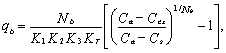При расчете капельных биофильтров величину qbf при заданных Len и Lex, мг/л,
