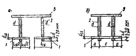 Рис. 20 Наименьшие расстояния между осями анкеров и от осей крайних анкеров до граней железобетонного элемента а = 4 dd (5 dd); b = 6 dd (7 dd); Остальные параметры табл. 4 определяются аналогичным образом. В формуле (62) коэффициент jс для нормальных анкеров равен Таблица 4