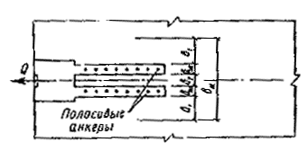 Расчетное предельное усилие Q определяем следующим образом. 1. По прочности растянутых полосовых анкеров (см. рис. 23, a) - по формуле (51):