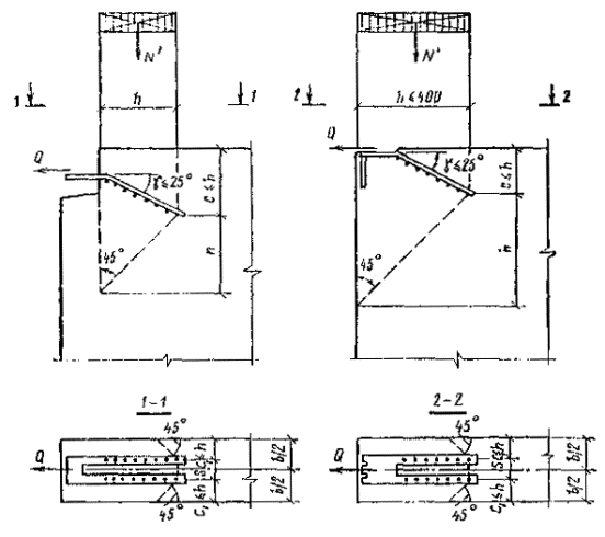 последнего выступа до грани элемента в направлении силы Q, h£40 см; с и с1