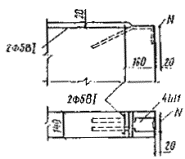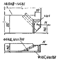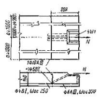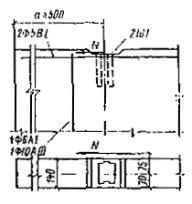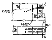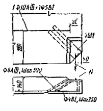 4. По прочности на откалывание бетона растянутыми полосовыми анкерами (рис. 35): 1-й случай. Прижимающая сила N¢ = 19500 H (см. выше) действует на участке штампованной закладной детали. Тогда по формуле (55) предельное усилие Q будет равно: