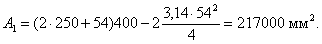 Значение коэффициента bb принимаем максимальным, равным bb = 2,5, поскольку расчетная площадь бетона Ad в данном случае значительно больше площади смятия под высаженной головкой. Для бетона класса В20 коэффициент jb = 1. Проверяем условие (41). j b, bb, Rb, Аlос = 1×2,5×9,8×2036 = 49800 Н > Nloc = 38600 H, т.е. прочность бетона на смятие обеспечена. Поскольку Вычисляем значение площади проекции поверхности выкалывания А1 (см. рис. 27):