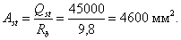 Принимаем длину анкера la = 290 мм > 15d = 15×16 = 240 мм и по условию (45) проверяем бетон под коротышом на смятие.