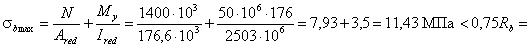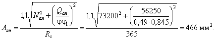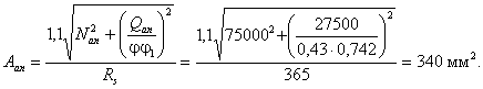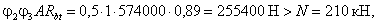 Поскольку усилие Nan < = 75 кН приложено в центре тяжести площади А1, то е = 0. Для тяжелого бетона j2 = 0,5. Проверим условие (35),