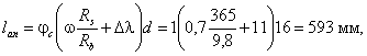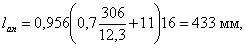 Принимаем la = 580 мм. Проекция длины на горизонталь равна lasin30° = 580×0,5 = 290 мм, что позволяет разместить наклонные анкеры такой длины в оболочке дымовой трубы толщиной 330 мм. По формуле (62) определяем минимальную длину нормальных анкеров, поскольку площадь Aan принята с запасом, получим