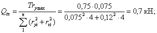 3. По определению растягивающего усилия в наиболее напряженном анкере: Предельное усилие (при e0 = 15 мм) на закладную деталь принимаем по минимальному значению Q = 7400 Н из расчета на раскалывание бетона. По формуле (57)