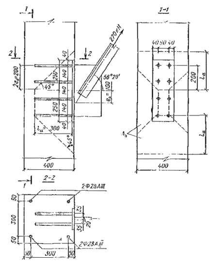 закладную деталь бетоне трещины отсутствуют, а la = 270 мм < 15d =