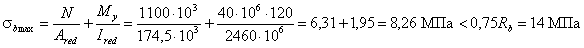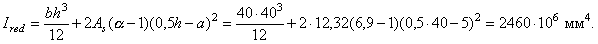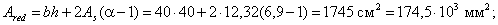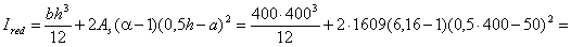 т.е. условие (32) не выполняется. Проведем его повторную проверку путем уточнения значения коэффициента j3. Для этого вычислим приведенные площади Ared и момент инерции Ired сечения колонны.