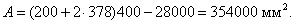 б) требования любого вида сварки стержней втавр (см. табл. 5) 0,75d = 0,75×14 = 10,5 мм < 22 мм. Проверяем бетон на выкалывание. Поскольку все анкеры растянуты и имеют усиление, расчет производим из условия (32). Определяем площадь проекции выкалывания А (см. рис. 31) за вычетом площади пластины: