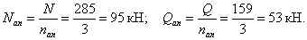 Согласно рис. 27, сдвигающая сила Q = 150 кH, число рядов анкеров nan = 3. Принимая