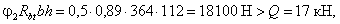2-й случай. Предельное усилие (при е0 = 15 мм) принимаем: Q = 20400 H (из расчета на раскалывание бетона);