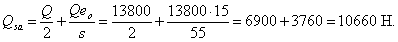 1-й случай. Qsa = 14800 H > 10660 Н. 2-й случай. Qsa = 14800 H < 15740 Н и, следовательно, максимальное усилие на наиболее напряженный анкер может быть допущено равным 11800 Н, а усилие на закладную деталь определено из формулы (57):