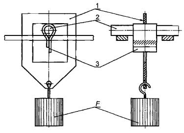 по 8.2.4 ГОСТ Р МЭК 60811-3-1, учитывая, что D - меньший размер кабеля и Если меньшие стороны кабеля плоские или почти плоские (см. рисунок 1), испытание проводят в соответствии с 8.2 ГОСТ Р МЭК 60811-3-1 с учетом следующих изменений. а) Подготовка образца Испытуемую полоску оболочки вырезают из большей стороны кабеля в направлении его оси. На внутренней стороне путем шлифовки или срезания удаляют только выступы от жил. Ширина полоски должна быть не менее 10 мм и не более 20 мм. Толщина оболочки должна быть измерена в месте, где прикладывается сжимающее усилие F в соответствии с рисунком 2. 1 - металлический нож; 2 - стержень; 3 - зафиксированный образец, изогнутый вокруг стержня; F - сжимающее усилие Рисунок 2 - Устройство для продавливания образца б) Положение образца в испытательном устройстве Полоска должна быть изогнута вокруг металлического стержня, диаметр которого приблизительно равен диаметру изолированной жилы кабеля; продольная ось полоски должна быть перпендикулярна оси стержня. Внутренняя поверхность полоски должна контактировать со стержнем по дуге не менее 120° (см. рисунок 2). Нож испытательного устройства должен располагаться посередине образца. в) Расчет сжимающего усилия Расчет проводят в соответствии с 8.2.4 ГОСТ Р МЭК 60811-3-1, при этом: