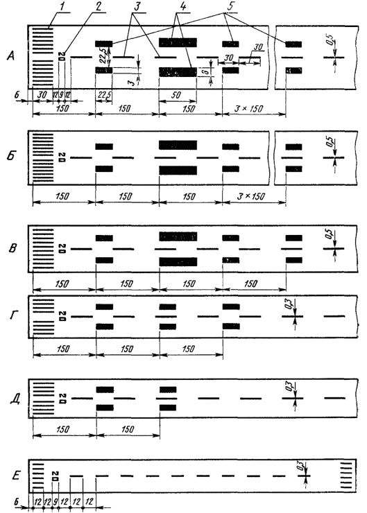 Постановлением Государственного комитета СССР по стандартам от 27 октября 1978 г. № 2801 срок введения установлен с 01.01.1980 г. Несоблюдение стандарта преследуется по закону Настоящий стандарт распространяется на аэродромы с искусственными покрытиями и устанавливает дневную маркировку искусственных покрытий строящихся и эксплуатируемых аэродромов. Стандарт соответствует требованиям Международной организации гражданской авиации («Аэродромы. Приложение 14 к конвенции ИКАО»). 1. ОБЩИЕ ПОЛОЖЕНИЯ1.1. Маркировка искусственных взлетно-посадочных полос (ИВПП), рулежных дорожек (РД), мест стоянок (МС)* и перронов предназначена для обеспечения безопасности при выполнении взлетно-посадочных операций и рулении и обязательна для аэродромов всех классов определенных СНиП 2.05.08-85 в зависимости от размеров аэродрома и ветровой загрузки летной полосы. * Маркировку МС, в обоснованных случаях, допускается не наносить. (Измененная редакция, Изм. № 1). 1.2. Маркировка искусственных покрытий аэродромов должна наноситься в виде линий, цифр, букв согласно черт. 1. 1.3. Маркировка искусственных покрытий должна выполняться специальными красками или другими материалами, требования к которым устанавливаются нормативно-технической документацией. Материалы должны обеспечивать видимость знаков при различных условиях освещенности и не вызывать опасности неравномерного торможения колес самолетов. Схема маркировки аэродрома 1 - искусственная взлетно-посадочная полоса; 2 - рулежные дорожки; 3 - перрон; 4 - места стоянки Черт. 1 1.4. Все маркировочные знаки ИВПП должны быть белого цвета и иметь максимальную контрастность в любых условиях. (Новая редакция, Изм. № 1). 1.5. Маркировочные знаки РД, МС и перрона должны быть контрастирующими по форме или цвету с маркировочными знаками ИВПП и иметь для аэродромов гражданской авиации оранжевый (желтый) цвет. Для аэродромов других министерств и ведомств допускается использование белого цвета. Исключение составляют маркировочные знаки оконтуривающих линий зон обслуживания самолетов, имеющие красный цвет, и путей движения специальных машин - белый цвет. (Изменение редакции, Изм. № 1). 1.6. В отдельных случаях допускается нанесение дополнительной информации, необходимой для решения конкретных задач. 2. МАРКИРОВКА ИСКУССТВЕННЫХ ВЗЛЕТНО-ПОСАДОЧНЫХ ПОЛОС (ИВПП)2.1. На покрытии ИВПП маркировочными знаками обозначают: продольную ось ИВПП, порог, цифровое значение посадочного магнитного путевого угла (ПМПУ), зону приземления, фиксированное расстояние и край. Маркировка покрытий ИВПП аэродромов всех классов должна соответствовать черт. 2, а размеры маркировочных знаков - табл. 1. Таблица 1 Расположение, размеры и количество маркировочных знаков на ИВПП Примечание: 1. На ИВПП, оборудованных для эксплуатации по II или III категориям ИКАО, осевая линия должна иметь ширину 0,9 м. 2. Значение в скобках соответствует маркировке параллельных полос. 3. Количество знаков зоны приземления дано с учетом знаков фиксированного расстояния для одного курса посадки. 4. При наличии на аэродроме двух и более ИВПП маркировку каждой из них выполняют по классу, соответствующему их длине. (Измененная редакция, Изм. № 1). 2.2. Ось ИВПП на аэродромах всех классов маркируют продольными полосами одинаковой длины, расположенными на равном расстоянии друг от друга, за исклю