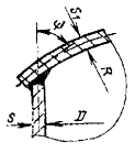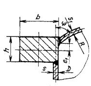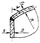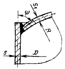 Черт. 2 Черт. 3 Примечание. Черт. 1-6 не определяют конструкцию. Если нет точных данных, то формулы применяют при условии, что расчетная температура стенки днища или крышки из углеродистой стали не превышает 380 °С, из низколегированной - 420 °С, а из аустенитной - 525 °С. 1.3. Расчетные формулы применяют при условии выполнения угловых швов с двусторонним сплошным проваром. 1.4. Расчетные формулы не учитывают нагружение колец дополнительными нагрузками, например опорными элементами. 1.5. Расчет укрепления отверстий - по ГОСТ 24755-81. 2. СФЕРИЧЕСКИЕ НЕОТБОРТОВАННЫЕ ДНИЩА И КРЫШКИ, НАГРУЖЕННЫЕ ВНУТРЕННИМ ИЗБЫТОЧНЫМ ДАВЛЕНИЕМ2.1. Толщину стенок крышек и днищ определяют методом последовательных приближений. Предварительно толщину стенки следует определять по формуле а затем по формуле Расчет проводят