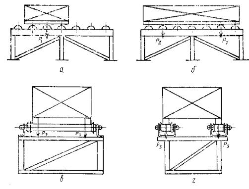Р1 = 1,25Qg; Р2 = 0,5Р1; Р3 = 0,5Р1 - для тарно-штучных грузов; Р3 = 0,5Р2 - для длинномерных грузов; Q - номинальная масса брутто тары, кг; g = 9,81 м/с2 - ускорение свободного падения.