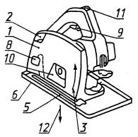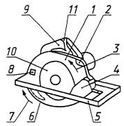 1-3; 5; 6; 8-10 (см. рисунок 101); 11 - рычаг разблокирования фиксации погружения; 12 - направление погружения пильного диска