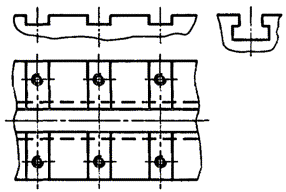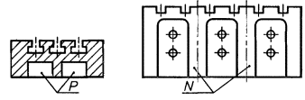 3 ПРАВИЛА КОНСТРУИРОВАНИЯ3.1 Геометрическая форма деталей и сборочных единиц СРПС должна соответствовать их функциональному назначению и обеспечивать достаточную жесткость. 3.2 Число конструктивных элементов, выполненных на поверхностях деталей, и их взаимное расположение должны обеспечивать универсальность деталей. 3.3 Размеры, поля допусков и их нанесение должны соответствовать функциональному назначению деталей и выбираться согласно требованиям настоящего стандарта. Технические требования - по ГОСТ 31.211.42. Основные размеры выбирают из ряда Ra 20, дополнительные - Ra 40. 3.4 Базирующие присоединительные элементы определяют в зависимости от выбранной при проектировании эксплуатационной характеристики деталей и сборочных единиц СРПС с учетом их применения: - для соединения элементов приспособлений (стендов); - для установки приспособлений (стендов) на опоры; - для установки агрегатных приводных устройств. 3.5 Основными конструктивными особенностями базовых поверхностей деталей и сборочных единиц СРПС являются: - с взаимно перпендикулярным расположением Т-образных пазов; - с взаимно перпендикулярным расположением Т-образных пазов и отверстиями на пересечении пазов; - с взаимно перпендикулярным расположением П-образных пазов и резьбовыми отверстиями на пересечении пазов; - с взаимно перпендикулярным расположением П-образных пазов и отверстиями на пересечении пазов; - с взаимно перпендикулярным расположением П-образных пазов и сеткой отверстий (рисунок 7); Рисунок 7 - с параллельным расположением Т-образных и П-образных пазов; - с взаимно перпендикулярным расположением Т-образных и П-образных пазов; - с взаимно перпендикулярным расположением поперечных П-образных пазов и центрального Т-образного паза и сеткой отверстий (рисунок 8); Рисунок 8 - с взаимно перпендикулярным расположением поперечных П-образных пазов и центрального Т-образного паза и сеткой резьбовых отверстий (рисунок 9). Рисунок 9 3.6 Рекомендуется в базовых и корпусных деталях выполнять "карманы" Р и ребра жесткости N (рисунок 10). Рисунок 10 3.7 Основные размеры, обеспечивающие точность расположения баз, следует указывать согласно рисунку 11, а. Допускается основные размеры указывать от общей базы согласно рисунку 11, б. Рисунок 11 3.8 Для опор и угольников высотой более 120 мм следует предусматривать крепление двумя-четырьмя болтами. 3.9 Рекомендуется в Т-образных пазах делать выемки для более удобного заведения в пазы крепежных болтов (рисунок 12). Рисунок 12 3.10 Номенклатура вновь разрабатываемых деталей и сборочных единиц, изготовляемых специализированным производством, должна быть включена в промышленный каталог. 4 ИЗМЕРЕНИЕ ГЕОМЕТРИЧЕСКИХ ПАРАМЕТРОВ4.2 Допускаемые погрешности при измерении линейных размеров - по ГОСТ 8.051. 4.3 Требования к нормальным условиям выполнения линейных измерений - по ГОСТ 8.050. 4.4 Методы контроля формы и расположения поверхностей деталей и сборочных единиц СРПС приведены в приложении А. Применяемые для контроля приспособления и инструмент приведены в приложении Б. ПРИЛОЖЕНИЕ А