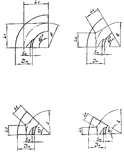 отводы с углом поворота 30°, 45°, 60°, 90° и радиусом поворота отводов
