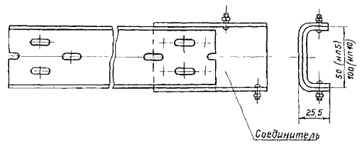 4.7. Соединения секций лотков всех типов должны выполняться с помощью стандартных резьбовых крепежных изделий (рис. 4).