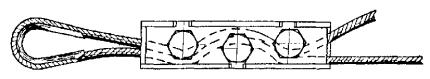 Рис. 1. Крепление незащищенных проводов к несущим полосам, струнам и тросу монтажной лентой