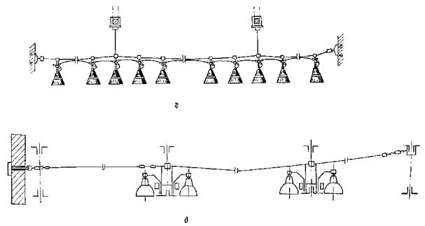 а - на полосе; б - на струне; в - на тросе;