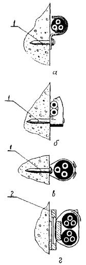 При установке на основаниях таких креплений сначала намечаются места их установки у коробок, электроприемников, на поворотах и у проходов, а затем - на промежуточных участках, на равных расстояниях друг от друга в соответствии с нормами на крепления.
