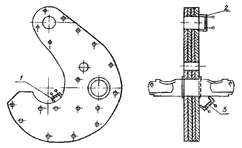 КОНТРОЛЯ КРЮКОБЛОКОВ РД 39-0147014-527-86 Вводится впервые Срок введения установлен с 01.04.1986 г. Срок действия до 31.12.1989 г. В настоящем документе излагается технология неразрушающего контроля крюкоблоков и крюков грузоподъемных механизмов с применением визуального, магнитного и акустического методов контроля при их ремонте. 1. ОБЩИЕ ПОЛОЖЕНИЯ1.1. Согласно «Инструкции по проведению дефектоскопии бурового, нефтепромыслового оборудования и инструмента на предприятиях и в объединениях Министерства нефтяной промышленности»* крюкоблоки и крюки должны подвергаться неразрушающему контролю (НК). Детали, подвергаемые НК, перечислены в табл. 1 и показаны на рис. 1. *Министерство нефтяной промышленности. Инструкция по проведению дефектоскопии бурового, нефтепромыслового оборудования на предприятиях и в объединениях Министерства нефтяной промышленности: Утв. 13.12.77/ Миннефтепром. - Уфа: Б. и., 1977. - 19 с. 1.2. По настоящему документу НК крюкоблоков и крюков должен выполняться на центральных базах производственного обслуживания и на ремонтно-механических заводах В/О «Союзнефтемашремонт» при капитальном ремонте. 1.3. При НК крюкоблоков и крюков по настоящей технологии выявляются поверхностные и подповерхностные дефекты типа трещин, надрывов, раковин и другие нарушения сплошности металла. Детали крюкоблока и крюка, подвергаемые НК