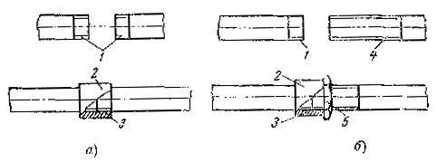 3-11. Внутренняя поверхность труб, применяемых для прокладки проводов и кабелей, должна быть гладкой (без выступов, зазубрин, ржавчины и т.п.), обеспечивающей протягивание проводов и кабелей без нарушения изоляции и оболочки. 3-12. При открытой прокладке трубы следует очищать от ржавчины и окрашивать внутри и снаружи; при скрытой прокладке очищать от ржавчины и окрашивать только внутри. 3-13. При открытой прокладке в помещениях с химически активной средой необходимо наносить внутри и снаружи труб антикоррозионное покрытие, предусмотренное проектом. Выбор покрытия следует производить в соответствии с требованиями, предъявляемыми к окраске металлических поверхностей и указанными в общемашиностроительных типовых руководящих материалах ОМТРМ 7312-010-70 Министерства станкоинструментальной и инструментальной промышленности. 3-14. Соединения труб между собой, с патрубками коробок, светильниками, с аппаратурой и вводными коробками электродвигателей необходимо выполнять на трубной цилиндрической, в том числе накатной резьбах (последняя - только для тонкостенных труб). Профиль и размеры резьбы должны соответствовать требованиям ГОСТ 6357-52. 3-15. Применять манжеты, а также сварку для соединения любых труб запрещается. 3-16. Неразъемные соединения труб (рис. 1, а) можно выполнять навертыванием муфты на конец одной трубы с короткой резьбой и ввертыванием в муфту другой трубы, имеющей конец с короткой резьбой. При разъемных соединениях (рис. 1, б) на конце одной трубы должна быть короткая резьба, а на конце другой - длинная. Сначала контргайку, а затем муфту навертывают на конец с длинной резьбой, после чего муфту навертывают на конец с короткой резьбой до конца последней, а контргайку привертывают вплотную к муфте. Размеры длинной и короткой резьбы на концах труб должны соответствовать данным табл. 2. Рис. 1. Соединения труб. 1 - короткая резьба; 2 - муфта по ГОСТ 8966-59; 3 - пеньковое волокно, пропитанное суриком (по всей длине резьбы муфты); 4 - длинная резьба; 5 - контргайка по ГОСТ 8968-59. Таблица 2