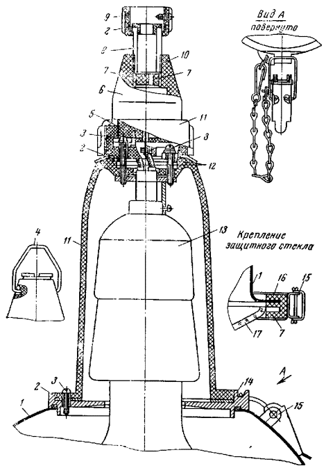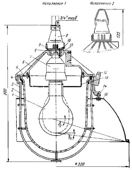 7-10. В складских пожароопасных помещениях всех классов применение светильников с рассеивателями и отражателями из сгораемых и трудносгораемых материалов запрещается. 7-11. Для подключения патронов светильников, не имеющих универсальных встроенных штепсельных соединений (например, РН, СХ и т.д.), рекомендуется использовать провода с термостойкой изоляцией (например, ПРКС, ПРБС и т.д.). Марки проводов для зарядки светильников должны быть указаны в проекте, а длина определяется расстоянием от светильника до ближайшей ответвительной коробки плюс 100 мм, необходимых для соединения в коробке, и 80-150 мм (в зависимости от типа светильника) - для подсоединения к контактным зажимам патрона. 7-12. Светильники с универсальными встроенными штепсельными соединениями, например ППД (ППР), СЗЛ, поставляются с патронами, заряженными проводами ПРКС на заводе; для подключения светильника необходимо подвести питающий провод или кабель (например, ВРГ) к штепсельному соединению. 7-13. Соединять провода внутри труб или кронштейнов запрещается; это можно делать только в коробках. 7-14. Установку светильников снаружи зданий следует осуществлять с предотвращением их раскачивания под действием ветра. 7-15. Конструкции светильников, выключателей, штепсельных розеток и т.п. должны соответствовать предусмотренной среде помещения. 7-16. Подвесную арматуру необходимо подвешивать на специально предназначенном для нее крюке либо крепить резьбовыми соединениями к стальной трубе. 7-17. Для установки светильников с лампами накаливания массой до 6 кг на стенах и колоннах рекомендуется использовать кронштейны У114, закрепляемые дюбелями, болтами или пристрелкой, а также кронштейны К984, устанавливаемые с помощью трубного держателя К939 или закрепов К928, К930 и К934. 7-18. Для подвешивания светильников массой до 6 кг с крюком, кольцом, бугелем и т.п. в верхней части, например ППД (ППР)-100, к патрубкам с резьбой 3/4" различных кронштейнов, подвесов, стоек рекомендуется применять держатель У25м. 7-19. Для жесткого крепления светильников «универсаль», (например, УП-24) на кронштейнах с резьбовым патрубком 3/4" рекомендуется использовать держатель У115. 7-20. При установке арматуры вплотную к потолку ее необходимо крепить к розетке из изоляционного материала, например РП (У627м), закрепляемой на крюках У623 и У625. Крюк У623 применяется для перекрытий из пустотелых плит, крюк У625 - для перекрытий из сплошных плит. 7-21. Установку светильников на основаниях, подвергающихся вибрации (ткацких станках, кранах и т.п.) следует осуществлять с использованием различных компенсирующих колебания приспособлений: пружин, амортизаторов (например, К937) и т.п. 7-22. Металлические конструкции крепления светильников (кронштейны, скобы, штанги, крепежные детали и т.п.) в сырых помещениях, помещениях с химически активной средой и наружных установках должны иметь надежное противокоррозионное покрытие. 7-23. Запрещается монтировать светильники с трещинами на стеклах защитных колпаков или в литых корпусах, с неисправными патронами, а также с углублениями или раковинами на сопрягаемых поверхностях. СВЕТИЛЬНИКИ ППД (ППР)-100, ППД (ППР)-200, ППД (ППР)-500, ППД2-500Конструкция 7-24. Светильники ППД и ППР состоят из металлического корпуса, встроенного штепсельного соединения ШСВ-20 и эмалированного отражателя (только для светильников ППД) (рис. 13-16). Вн