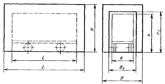 2.6. Размеры сушильных установок терморадиационных и терморадиационно-конвективных, проходных с подвесным непрерывно движущимся конвейером одноходовых (черт. 7) должны соответствовать табл. 8. Черт. 7 Таблица 8