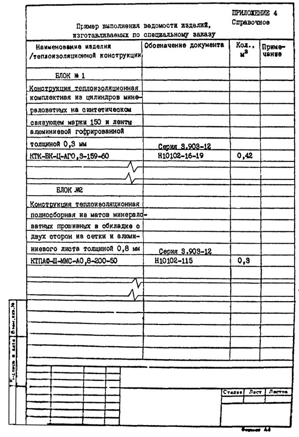 ПРИЛОЖЕНИЕ 4Справочное Пример выполнения ведомости изделий, изготавливаемых по специальному заказу