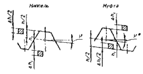 Dh1 - предельное отклонение высоты профиля резьбы ниппеля и муфты; sв - предел прочности; sт - предел текучести; d5 - относительное удлинение; НВ - твердость по Бринеллю; KCV - ударная вязкость. 3.3 Определения терминов для резьбы, используемых в настоящем стандарте, - по ГОСТ 11708. 3.4 В условное обозначение резьбы входят: буква "З", диаметр большого основания конуса ниппеля в соответствии с таблицей 3 (указывается только целая часть размера в миллиметрах) и обозначение настоящего стандарта. Например: З-133 ГОСТ Р.50864-96 То же, с левой резьбой З-133 LH ГОСТ Р.50864-96 Примечание. Исключение составляет обозначение резьбы З-117 и З-118, имеющие одинаковые размеры d1, но разные dср. 3.5 Соответствие обозначений резьбы по ГОСТ Р 50864-96 стандарту API 7 указано в приложении А. 4 ПРОФИЛЬ, РАЗМЕРЫ, ТЕХНИЧЕСКИЕ ТРЕБОВАНИЯ4.1 Детали резьбовых соединений должны изготовляться в соответствии с требованиями настоящего стандарта и по конструкторской документации, утвержденной в установленном порядке. 4.2 Профиль резьбы ниппеля и муфты и размеры его элементов должны соответствовать указанным на рисунках 1 и 2 и в таблице 1. Формы профиля I-V * Размеры для справок Рисунок 1 Форма профиля VI * Размеры для справок Рисунок 2 4.3 Предельные отклонения высоты профиля резьбы должны соответствовать указанным на рисунке 3 и в таблице 2. Таблица 1- Размеры элементов резьбы профиля ниппеля и муфты, мм