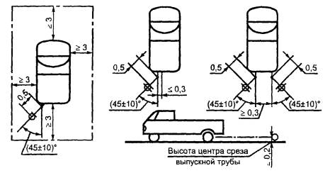 Дата введения 2000-01-07 Настоящий стандарт вводит в действие Правила ЕЭК ООН № 9 (далее - Правила). Настоящие Правила применяют при официальном утверждении транспортных средств в связи с производимым ими шумом категорий L2, L4 и L5. (Измененная редакция, Изм. № 1*). * Поправки серии 06-E/ECE/324-E/ECE/TRANS/505/Add.8/Rev.2/Amend.l, дата вступления в силу 08.03.99 (здесь и далее). 1 Область примененияНастоящие Правила устанавливают требования к шуму, производимому транспортными средствами категорий L2, L4 и L5. (Измененная редакция, Изм. №1). 2 ОпределенияВ настоящих Правилах применяют следующие термины с соответствующими определениями: 2.1 официальное утверждение транспортного средства: Официальное утверждение типа транспортного средства в отношении уровня звука и первоначальной системы выпуска или снижения шума в качестве технического узла. (Измененная редакция, Изм. №1). 2.2.1 формы и материалов, из которых изготовлен кузов (в частности, моторный отсек и его звукоизоляция); 2.2.2 длины и ширины транспортного средства; 2.2.3 типа двигателя (с принудительным зажиганием или с воспламенением от сжатия; с поршневым компрессором или роторно-поршневой; число и объем цилиндров; число и тип карбюраторов или систем впрыска, расположение клапанов; максимальная полезная мощность и соответствующая частота вращения двигателя). В случае роторно-поршневых двигателей объем должен в два раза превышать объем камеры. (Измененная редакция, Изм. №1). 2.2.4 количества передач и передаточных чисел. 2.2.5 числа, типа и расположения систем выпуска. (Введен дополнительно, Изм. №1). 2.3 система выпуска или снижения шума: Комплект элементов, необходимых для снижения шума, производимого транспортным средством и его отработавшими газами. (Измененная редакция, Изм. № 1). 2.3.1 первоначальная система выпуска или снижения шума: Система выпуска или снижения шума, которой транспортное средство оснащено в момент официального утверждения или распространения официального утверждения. Она может быть частью первоначального или сменного оборудования. (Введен дополнительно, Изм. №1). 2.4 типы систем выпуска: Системы выпуска или снижения шума, различающиеся по следующим основным аспектам: 2.4.1 фабричные или торговые марки элементов; 2.4.2 характеристики материалов, из которых сделан тот или иной элемент; 2.4.3 принцип работы хотя бы одного элемента; 2.4.4 сочетание элементов. 2.5 элемент системы выпуска*: Одна из индивидуальных составных частей, из которых состоит система выпуска. * Элементами системы выпуска являются: выпускной коллектор, выпускной трубопровод и патрубки, выпускная труба, собственно система снижения шума. Если двигатель снабжен воздушным фильтром и если наличие этого фильтра необходимо для соблюдения требуемых пределов звукового уровня, то он является элементом системы снижения шума и на него должна быть нанесена маркировка по 3.2.2 и 4.1. 2.4-2.5 (Измененная редакция, Изм. №1). 3 Заявка на официальное утверждение3.1 Заявка на официальное утверждение типа транспортного средства в связи с производимым им шумом представляется предприятием-изготовителем транспортного средства или его надлежащим образом уполномоченным представителем. 3.2 К заявке прилагают перечисленные ниже документы в трех экземплярах и следующие данные: 3.2.1 описание типа транспортного средства в отношении характеристик, упомянутых в 2.2. Указывают