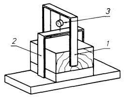1 - скоба, зажимающая шашку; 2 - скоба, нажимающая на доску; 3 - прибор, измеряющий усилие, направленное на отрыв шашки от доски