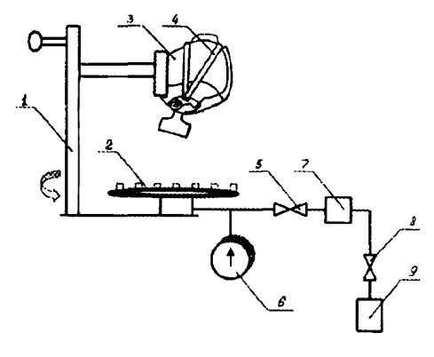 __________ * Проводят проверку нормативно-технической документации на самоспасатель. ** Количество самоспасателей определяет разработчик в соответствии с методиками, разработанными в инициативном порядке. 5.3. На сертификационные испытания самоспасателей представляется следующая нормативно-техническая документация: технические условия на самоспасатель; руководство по эксплуатации и паспорт на самоспасатель; гигиеническое заключение органов Санэпиднадзора Минздрава России на материалы самоспасателя. 5.4. На сертификационные испытания в области пожарной безопасности допускаются самоспасатели отечественного производства, прошедшие все стадии и этапы разработки, предусмотренные ГОСТ Р 15.201 и ГОСТ 2.103, все виды испытаний (в том числе межведомственные приемочные) и имеющие полный комплект конструкторской документации на серийное производство, согласованной с ФГУ ВНИИПО и ГУГПС МВД России. Самоспасатели зарубежного производства допускаются для проведения сертификационных испытаний, если они сопровождаются эксплуатационной документацией на русском языке и оформлены по ГОСТ 2.601. 5.5. Каждая новая модификация самоспасателя, имеющего сертификат пожарной безопасности, требует повторных сертификационных испытаний на соответствие требованиям настоящих норм. 5.6. Типовые испытания самоспасателей проводятся по отдельной программе, согласованной с заказчиком. 6. МЕТОДЫ ИСПЫТАНИЙ6.1. Проверку нормативно-технической документации на самоспасатель проводят путем определения соответствия ее содержания требованиям пп. 3.2.3; 3.3.1; 3.4.3; 3.4.10; 3.6.1; 3.6.2 настоящих норм. 6.2. Проверку соответствия самоспасателя требованиям пп. 3.1.1; 3.1.2; 3.4.1; 3.4.2; 3.5.1; 3.5.3 настоящих норм проводят визуально. 6.3. Испытания с использованием приборов и установок 6.3.1 Проверка времени защитного действия ФСЭ самоспасателя (п. 3.1.3 настоящих норм) Проверку проводят определением фильтрующе-сорбирующих свойств ФСЭ самоспасателя при воздействии на него оксида углерода, хлористого водорода, цианистого водорода и акролеина. Проверка времени защитного действия ФСЭ самоспасателя по оксиду углерода Проверку проводят в соответствии с ГОСТ 12.4.160. Время защитного действия определяют от момента пуска пульсирующего потока смеси оксида углерода с воздухом в ФСЭ до момента появления проскоковой концентрации оксида углерода за ФСЭ. Проверку проводят при следующих постоянных условиях: объемный расход пульсирующего потока газовоздушной смеси (30,0 ± 0,9) дм3/мин; относительная влажность воздуха (90 ± 5) %; температура воздушного потока (20 ± 5) °С; начальная концентрация оксида углерода в воздухе, подаваемого в ФСЭ, - (6200 ± 300) мг/м3; частота пульсаций 20-25 в минуту. Проскоковая концентрация оксида углерода за ФСЭ - 200 мг/м3. Результат проверки считают положительным, если выполняются требования п. 3.1.3 настоящих норм. Проверка времени защитного действия ФСЭ самоспасателя по цианистому водороду (синильной кислоте) Проверку проводят в соответствии с ГОСТ 12.4.158. Время защитного действия определяется от момента пуска смеси воздуха с синильной кислотой в ФСЭ до момента появления за ФСЭ смеси воздуха с синильной кислотой в количестве, обнаруживаемом индикатором. Проверку проводят при следующих постоянных условиях: объемный расход постоянного потока паровоздушной смеси (30,0 ± 0,9) дм3/мин; относительная влажно