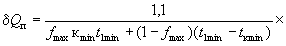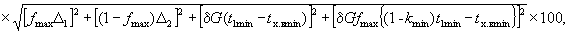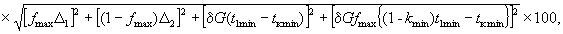 где D1 - предел допускаемой абсолютной погрешности измерений разности температур кt1min, °C; D2 - предел допускаемой абсолютной погрешности измерений разности температур (t1min - tх.в min), °С; dG - предел допускаемой относительной погрешности измерений массового расхода теплоносителя в подающем и обратном трубопроводах, доли единицы. Примечание - Формулу (3) применяют для того случая, когда подающий и обратный трубопроводы оснащены расходомерами одного и того же типа, имеющими один и тот же предел допускаемой относительной погрешности dG. 6.5 Предел допускаемой относительной погрешности dQп, %, двухканального теплосчетчика модификации II рассчитывают по следующей формуле, аналогичной формуле (3), но с заменой значений tх.в min на значения fк min