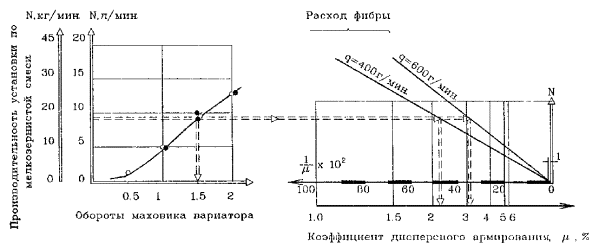 Рис. 2.4 Рабочая номограмма регулирования и согласования параметров технологии набрызга исходя из обеспечения заданного проектом коэффициента фибрового армирования (фибросодержания). Номограмма составлена применительно к установке PS 9000A. Таблица 2.6 Перечень основных подготовительных работ по организации технологического процесса