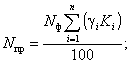 где α - суммарный фазовый коэффициент при полной нормальной загрузке регулируемого перекрестка, равный 0,9 при двухтактном, 0,85 - при трехтактном и 0,8 - при четырехтактном циклах регулирования; b - число основных циклообразующих направлений, требующих выделения полного такта; Nj - интенсивность по данному входу на перекресток, приведенных авт/ч; с - число возможных направлений движения с данного входа на перекресток при пересечении линии «стоп» (направо, прямо, налево); j - возможные направления движения по всем входам на перекресток; qj - фазовый коэффициент для j-го циклообразующего направления, определяемый по уравнению