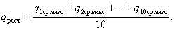 Влияние температуры воздуха и ветра на объемную массу снега на длительный период определяется по данным метеорологических станций. Для II климатической зоны среднюю объемную массу окученного снега за год, с учетом температуры и ветра, принимают 0,3 т/м3 при коэффициенте уплотнения 0,4; б) расчетный и максимальный снегопад. Снегоприемная способность камер и других сооружений, снегоудаляющая способность коллекторов, производительность снеготаялок, площадь технических и резервных полос и т.п. определяются из расчетного снегопада и проверяются на максимальный снегопад с учетом режимов уборки. Расчетный снегопад qрасч, т/м2, определяется за десятилетний период по формуле
