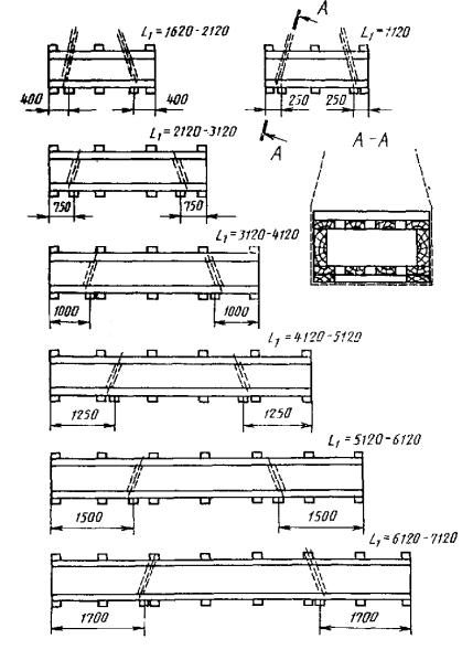 Примечания: 1 Масса листов, упаковываемых в ящики № 1-12, - не более 500 кг, в ящики № 13-155 - не более 800 кг. 2 Объем древесины в чистоте определен с учетом двух поперечных и двух продольных брусьев. 3 Допускается изготовлять промежуточные по длине размеры ящиков. РАЗМЕРЫ ЯЩИКОВ ТИПА II