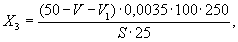 где 50 - объем взятого для анализа раствора серной кислоты с молярной концентрацией 0,05 моль/дм3, см3; V - объем раствора гидроокиси натрия с молярной концентрацией 0,1 моль/дм3, израсходованный на обратное титрование (среднее арифметическое двух титрований), см3; V1 - объем раствора серной кислоты с молярной концентрацией 0,05 моль/дм3, израсходованный на разложение 5 см3 раствора уротропина с молярной концентрацией 0,1 моль/дм3, см3; 0,0035 - масса уротропина, связываемого 1 см3 раствора серной кислоты с молярной концентрацией 0,05 моль/дм3; 250 - объем водной вытяжки, см3; S - площадь трех образцов бумаги, взятых для приготовления водной вытяжки, дм2; 25 - объем водной вытяжки, взятой для анализа. V1 определяют следующим образом: 5 см3 раствора уротропина с молярной концентрацией 0,1 моль/дм3 переносят в коническую колбу вместимостью 250 см3, прибавляют 20 см3 воды, 50 см3 раствора серной кислоты с молярной концентрацией 0,05 моль/дм3, накрывают воронкой и кипятят в течение (3,0±1,0) мин, после чего охлаждают, прибавляют несколько капель смешанного индикатора и титруют избыток серной кислоты раствором гидроокиси натрия с молярной концентрацией 0,1 моль/дм3 до перехода фиолетовой окраски в зеленую. Объем раствора серной кислоты (V1) вычисляют по формуле V1 = 50 - b, (3а) где 50 - объем раствора серной кислоты с молярной концентрацией 0,05 моль/дм3, израсходованный для определения, см3; b - объем раствора гидроокиси натрия с молярной концентрацией 0,1 моль/дм3, израсходованный на обратное титрование, см3. За результат испытания принимают среднее арифметическое двух определений, округленное до 0,1 г. Границы общей относительной погрешности составляют ±2,5 % с доверительной вероятностью 0,95. 3.7.2.4 Упрощенный метод определения массы ингибитора в бумаге УНИ. 3.7.2.4.1 Метод основан на измерении разницы масс противокоррозионной бумаги и бумаги-основы после удаления из первой ингибитора экстрагированием. 3.7.2.4.2 Отбор образцов Из листов, отобранных по 3.1, нарезают шесть образцов бумаги размером (20,00±0,05) × (25,00±0,05) см. В воронку Бюхнера вкладывают фильтровальную бумагу и соединяют ее через колбу с водоструйным насосом. 3.7.2.4.3 Проведение испытания Для одного измерения берут два образца бумаги, взвешивают с точностью до 0,005 г. Потом образцы измельчают на кусочки площадью не более 0,5 см2, помещают их в коническую колбу вместимостью 1000 см3, доливают ее не менее 500 см3 дистиллированной воды и взбалтывают не менее 0,5 ч. Полученный экстракт отфильтровывают на воронке Бюхнера. Фильтр с кусочками бумаги высушивают в сушильном шкафу при температуре (105±2) °С, затем выдерживают в эксикаторе до температуры окружающей среды, отделяют кусочки бумаги от фильтра и взвешивают их с точностью до 0,005 г. Высушивание проводят до тех пор, пока разница масс между повторными взвешиваниями будет не более 0,005 г. 3.7.2.4.4 Обработка результатов Массу ингибиторов в бумаге площадью 1 м2 (Х4) в граммах вычисляют по формуле