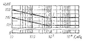 2.14.2. Толщиномеры должны сохранять работоспособность при воздействии внешних гармонических помех магнитного поля. Параметры помехи должны соответствовать приведенным на черт. 2. Примечание. Значения напряжения, тока и напряженности поля электромагнитных помех выражают соответственно в децибелах относительно 1 мкВ, 1 мкА, 1 мкВ/м - для электрического поля; 1 мкА/м - для магнитного поля. Предельные значения напряжения гармонических помех в полосе частот от 10 кГц до 30 МГц 1 - на зажимах питания от сети переменного тока; 2 - на зажимах питания от сети постоянного тока Черт. 1 Предельные значения напряженности магнитного поля гармонических помех в полосе частот от 30 Гц до 50 кГц Черт. 2 2.14.3. Толщиномеры должны сохранять работоспособность при воздействии гармонической помехи внешнего электрического поля с эффективным значением напряженности поля 120 дБ в полосе частот, установленной в технических условиях на толщиномеры конкретных типов. 2.14.4. Дополнительные требования по помехозащищенности могут быть установлены в технических условиях на толщиномеры конкретного типа. По требованию потребителя допускается проводить проверку толщиномеров переменным напряжением с частотой от 100 Гц до 30 мГц синусоидальной характеристики. 2.15. В эксплуатационной документации толщиномеров должны быть указаны следующие данные: типы рекомендуемых контактных сред, температура и другие условия их применения; сведения о местах подключения внешних устройств для съема или ввода электрических сигналов с указанием параметров входных (выходных) сигналов и допустимой нагрузки; типы используемых элементов питания и их количество. 2.16. Требования к пьезоэлектрическим преобразователям Основные параметры пьезоэлектрических преобразователей, входящих в комплект толщиномера, устанавливают по ГОСТ 26266 в технических условиях и эксплуатационной документации на преобразователи или толщиномеры. 2.17. Условное обозначение ультразвукового толщиномера должно состоять: из букв УТ, номера модели, буквенно-цифрового обозначения конструктивного исполнения (при необходимости). Пример условного обозначения ультразвукового толщиномера с номером модели 93: УТ-93П 2.18. Номенклатура основных показателей качества, необходимых при разработке ТЗ и ТУ на ультразвуковые толщиномеры, приведена в приложении 2. ПРИЛОЖЕНИЕ 1