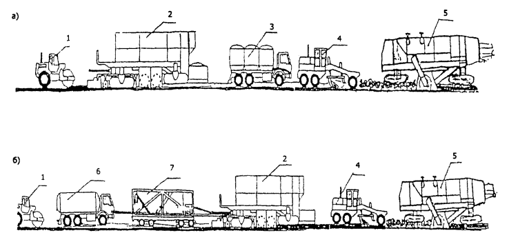Так как плотность регенерированного слоя является переменной величиной и может в процессе работ изменяться в пределах ± 0,05 г/см3, толщина регенерированного слоя может колебаться в пределах ± 0,5 см, что не существенно. Если АГБ-смесь разравнивается без предварительного уплотнения виброплитой, то толщина слоя в рыхлом теле должна быть примерно на 30 % больше толщины слоя после окончательного уплотнения. Если АГБ-смесь разравнивается с предварительным уплотнением виброплитой, то после окончательного уплотнения толщина регенерированного слоя уменьшится примерно на 6 %. 8.24. Ведущие машины осуществляют укладку смеси по струне. Производство работ методом смешения в автономной установке8.25. Подготовительные работы и организация движения при производстве работ рассматриваемым методом аналогичны изложенным в п.п. 8.14 - 8.15. 8.26. Операции выравнивающего и регенерационного фрезерования здесь совмещены. Весь АГ вывозят на притрассовые склады. 8.27. Для изготовления АГБ-смесей используют легко монтируемую и демонтируемую полустационарную установку, оборудованную смесителем принудительного действия и дозаторами жидких и сыпучих материалов. Чаще всего применяют установки непрерывного действия. Для хранения жидких и сыпучих добавок используют силосные банки и цистерны, оборудованные системой подачи добавок в дозаторы смесителя. 8.28. АГ должен находиться на складах в виде конусов или призм высотой до 2 м. В более высоких кучах АГ подвержен слеживанию, особенно в жаркую летнюю погоду. При окучивании АГ бульдозером или погрузчиком следует избегать наезда на АГ колес или гусениц. В противном случае происходит слипание гранул (слеживание АГ). При разгрузке автомобилей-самосвалов и окучивании крупные гранулы скатываются к основанию конуса, что приводит к расслаиванию АГ. Слежавшийся АГ должен быть пропущен через специальный измельчатель, который разминает крупные куски, но не дробит гранулы. 8.29. АГ подают на транспортер, ведущий к смесителю или в накопительный бункер смесительной установки, погрузчиком. Набор ковша погрузчика осуществляют снизу конуса или призмы. 8.30. При использовании установок циклического действия на качестве смеси может отразиться последовательность введения добавок. Для смесей типов Э и К в смеситель впрыскивают воду смачивания, а затем - эмульсию. Для смеси типа М сначала вводят цемент, а затем - воду. Для смеси типа К цемент вводят в последнюю очередь. При использовании установок непрерывного действия все добавки вводят одновременно. 8.31. Количество воды смачивания уточняют с учетом естественной влажности АГ, воды, содержащейся в эмульсии, и оптимальной влажности смеси (см. п. 8.15). 8.32. Готовую смесь доставляют к асфальтоукладчику автомобилями-самосвалами. Время доставки при работе со смесями типов М и К не должно превышать 2 ч, во избежание увеличения жесткости смеси. 8.33. С целью исключения продольных стыков или уменьшения их числа укладку смеси желательно вести несколькими укладчиками или одним широкозахватным на всю ширину половины проезжей части. В противном случае, число проходов определяют по формуле (18). Смежные полосы укладывают впритык. 8.34. Укладку смеси осуществляют по струне. 8.35. Длину захватки назначают, как указано в п. 8.22. 8.36. Толщину слоя, выходящего из-под плиты укладчика, регулируют с учетом сведений, 