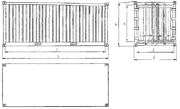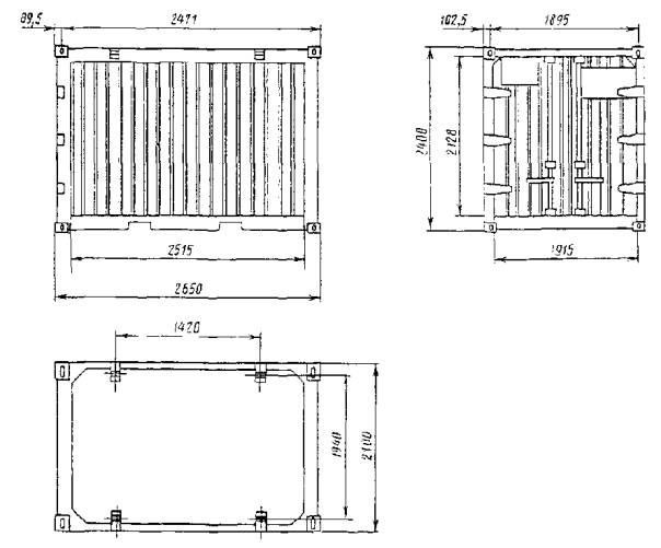 Примечание. Черт. 1-9 не определяют конструкцию контейнера. Среднетоннажные контейнеры УУКП-5(6), УУКП-5, УУК-5(6) и УУК-5 Черт. 2 (Измененная редакция, Изм. № 3). Среднетоннажные контейнеры УУК-5 с угловыми фитингами