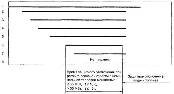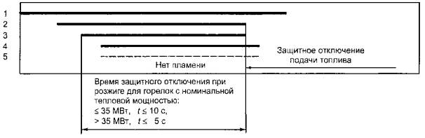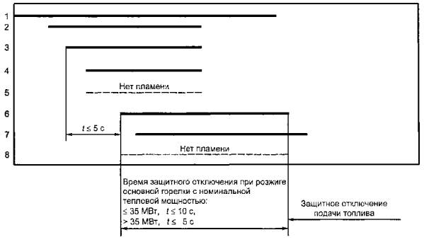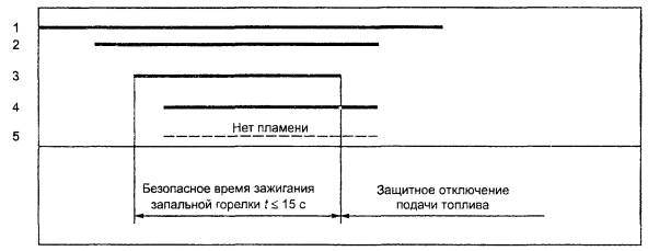 Диаграмма с защитным отключением подачи топлива при погасании пламени при розжиге