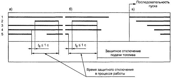 4.2.8 В автоматической горелке открытие запорного топливного органа не должно осуществляться в следующих случаях: - при отключенном состоянии горелки; - при защитном отключении подачи топлива или защитном выключении горелки в результате срабатывания системы контроля пламени или защитных систем теплового агрегата; - если при пуске, до введения запального устройства в действие, появится сигнал о наличии пламени; - если при пуске не обеспечена продувка и надежный отвод или рециркуляция продуктов сгорания; - если при пуске не обеспечены условия для безопасной эксплуатации горелки (подвод электрической энергии, требуемая температура топлива, подвод воздуха для горения, необходимые давление распыливающего вещества и частота вращения механического распыливающего устройства и др.); - при недопустимых отклонениях параметров тепловой установки. 4.2.10 Защитное выключение автоматической горелки должно осуществляться в следующих случаях: - при коротком замыкании или разрыве в датчике контроля пламени либо цепи связи датчика; - при соответствующем сигнале устройства контроля пламени или любого из защитных элементов теплового агрегата; - при прекращении подачи воздуха для горения, отвода продуктов сгорания или рециркуляции продуктов сгорания (с учетом требования 4.2.9); - при недопустимых отклонениях параметров топлива, необходимых для его безопасного сжигания. 4.2.11 Защитное выключение горелки должно сопровождаться сигналом. 4.2.12 Повторный пуск горелки после устранения причины защитного выключения должен производиться только обслуживающим персоналом. 4.2.13 Работоспособность автоматики горелок должна быть обеспечена при отклонениях напряжения электрического тока от плюс 10 % до минус 15 % номинального значения. 4.3 Требования надежности 4.3.1 Средний ресурс горелки до капитального ремонта (для ремонтируемых горелок) и до списания (для неремонтируемых горелок) должен быть не менее 18000 ч. Указанный ресурс не распространяется на быстроизнашиваемые элементы, автоматику горелки, а также на детали из огнеупорной керамики. 4.3.2 Электрические элементы автоматики, кроме указанных в 4.3.3, должны в условиях, близких к условиям эксплуатации горелки при напряжении питания, равном 110 % номинального значения, выдерживать не менее 100000 циклов включения и выключения. 4.4 Требования устойчивости к внешним воздействиям и работы в экстремальных условиях 4.4.1 По устойчивости к механическим воздействиям средства автоматизации должны соответствовать требованиям к изделиям в виброустойчивом исполнении, группа исполнения LX-NX по ГОСТ 12997. 4.4.2 Климатическое исполнение средств автоматизации - УХЛ по ГОСТ 15150. 4.4.3 Категория размещения средств автоматизации, размещаемых в закрытых помещениях без регулирования климатических условий, - 3.1, с регулируемыми климатическими условиями - 4.2 по ГОСТ 15150. 4.4.4 В районах, где имеется опасность наличия низких напряжений, горелка должна быть оснащена устройством, не допускающим пуск жидкотопливной горелки при падении подаваемого напряжения ниже допустимых значений. Это устройство может находиться вне горелки или быть соединено с регулирующим устройством. В тех случаях, когда оно является частью регулирующего устройства, на горелке должна быть маркировка с указанием наличия этого устройства. 4.5 Требования экономного использов